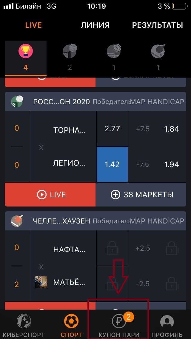 У приложения для iPhone и iPad неплохой функционал, тем не менее оно уступает десктопной версии сайта. В нем можно зарегистрироваться, заключать пари, следить за спортивными событиями в режиме Live и узнавать результаты матчей.