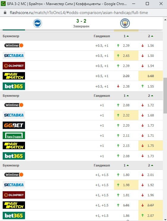 Пример №2. Английская Премьер-Лига: «Брайтон» — «Манчестер Сити»