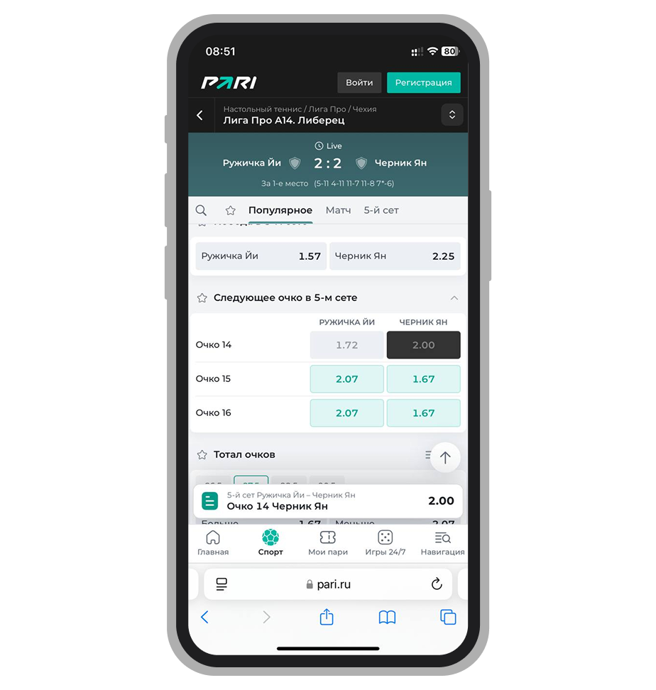 Работа с узкими рынками. Помимо итоговых исходов, безопаснее играть на отдельных розыгрышах, сетах и коротких игровых отрезках. Такие ставки позволяют точнее контролировать риск. В динамичной встрече часто можно найти завышенные коэффициенты именно внутри партий, когда спортсмен временно уступает, но остаётся конкурентоспособным.