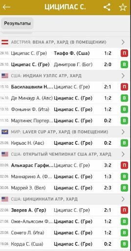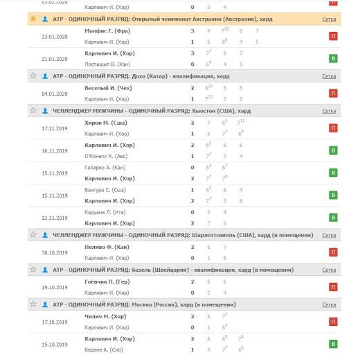 Хороший пример — грек Циципас, который уверенно входит в первую пятёрку лучших теннисистов. Он предпочитает грунтовые покрытия, а на быстрых кортах часто уступает сеты, но матчи выигрывает на классе. Вот его результаты на харде на нескольких турнирах: