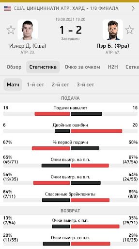 Пример подбора матча. Вот типичный поединок «подаванов». Обратите внимание на количество эйсов и счёт по геймам и партиям: