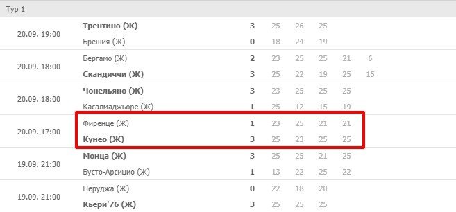 В том же чемпионате Италии мы нашли матч других сопоставимых соперников — «Вибо Валентия» — «Модена». Мы поставили 1000 рублей на ТБ 45.5 за 1.55 в первом сете, но проиграли. Далее мы увеличили ставку в три раза, поставив 3000 на ТБ 45.5 с тем же кэфом во втором сете, но вновь проигрыш. Затем повторно утроили пари: поставили 9000 на ТБ 45.5 за 1.54 в третьем сете. Ставка зашла.