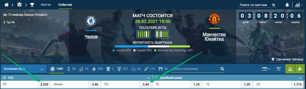 Если матч подходит хотя бы по 2 пунктам, можно заключать пари.