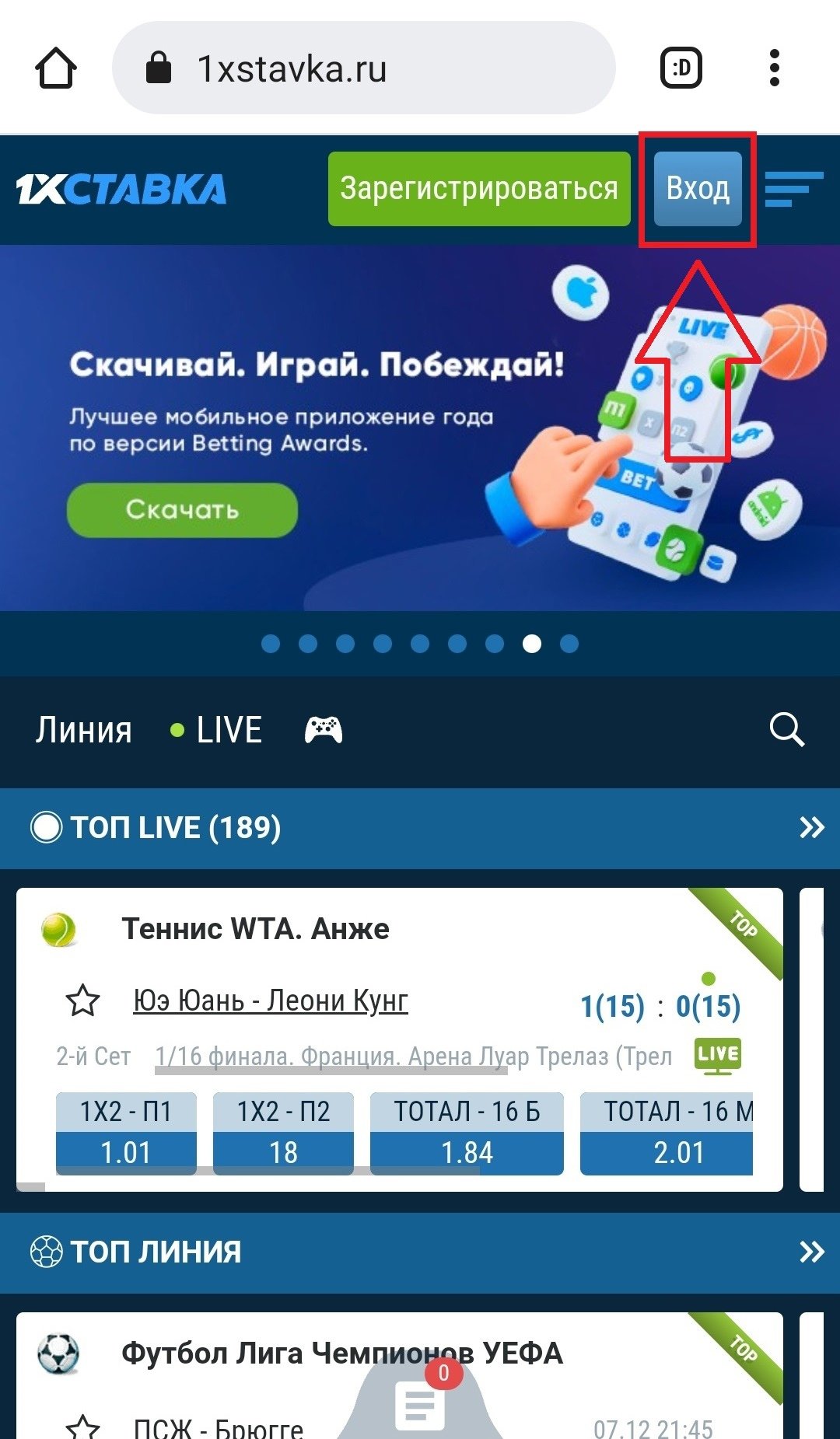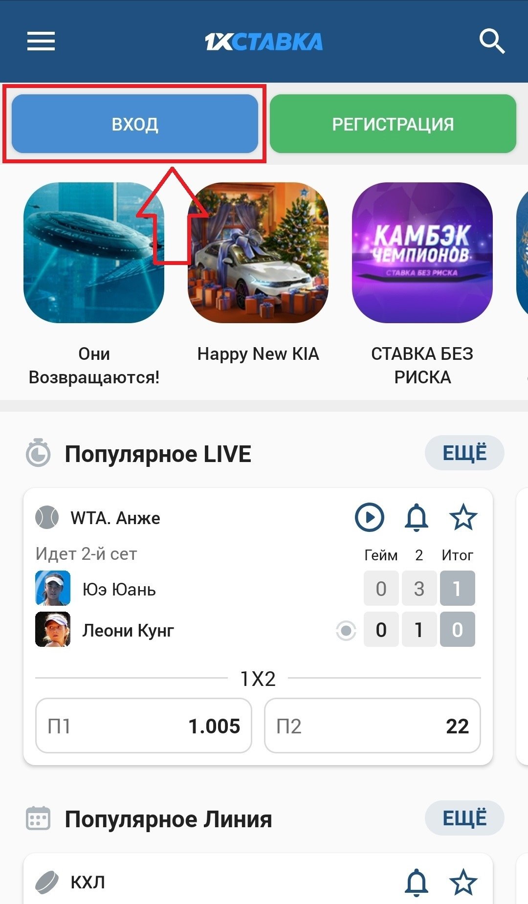 Вход через мобильный телефон также был возможен из официального приложения для iOS и Android. Программу разрешалось скачать на сайте букмекера. Для того чтобы попасть в аккаунт, требовалось нажать кнопку «Вход» в верхней части главного экрана.
