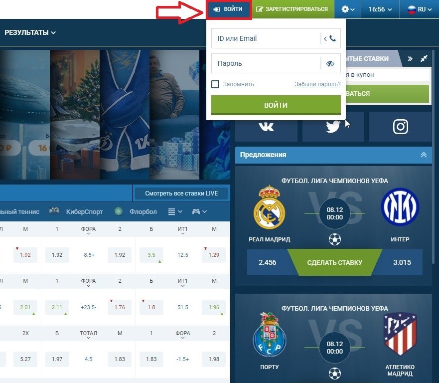 Вход в личный кабинет БК «1хСтавка» с помощью ID
