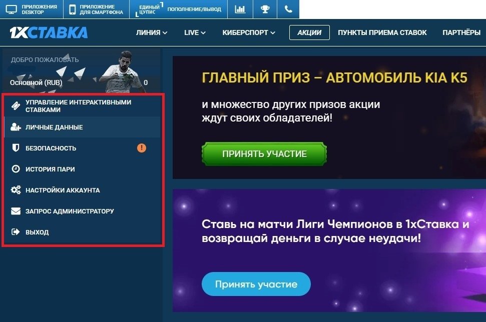 Личный кабинет БК «1хСтавка» — возможности и функционал