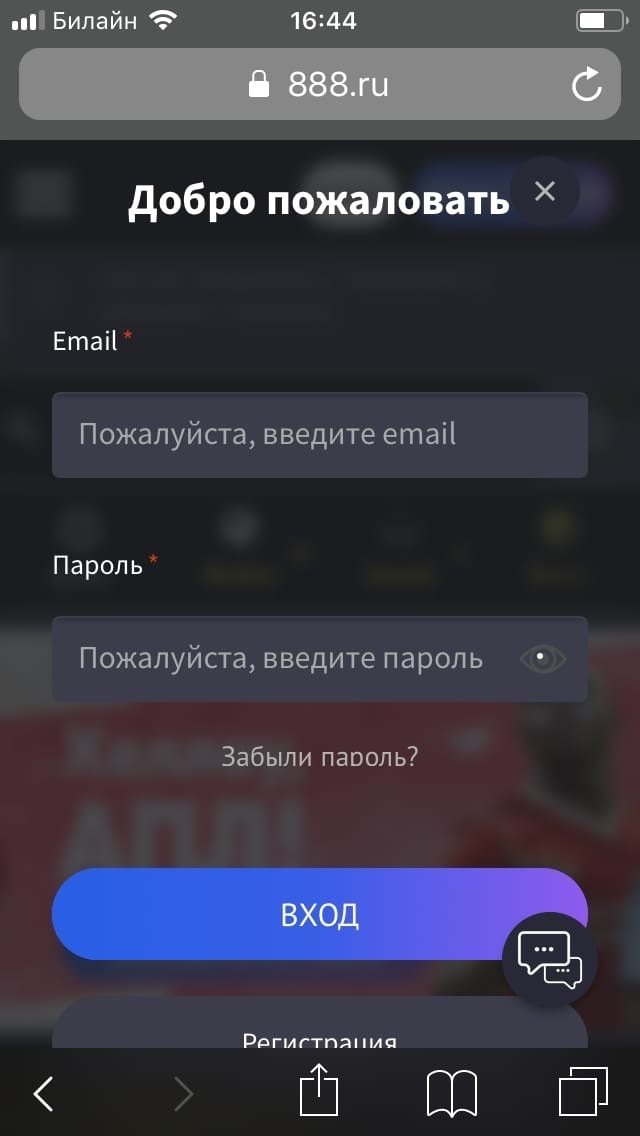 Процедура ничем не отличается от авторизации в мобильной версии 888.ru.