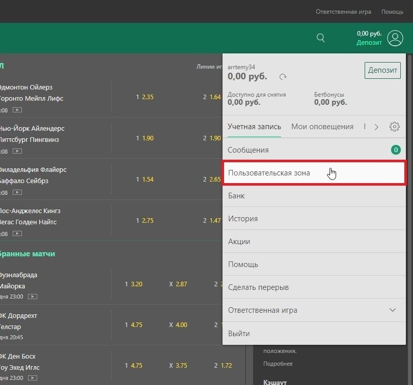 После авторизации на сайте в личный кабинет можно зайти нажатием на иконку пользователя в правом верхнем углу на главной странице. В выпадающем списке появятся все функции личного кабинета. Пункт «Пользовательская зона» откроет все опции личного кабинета в отдельном окне.