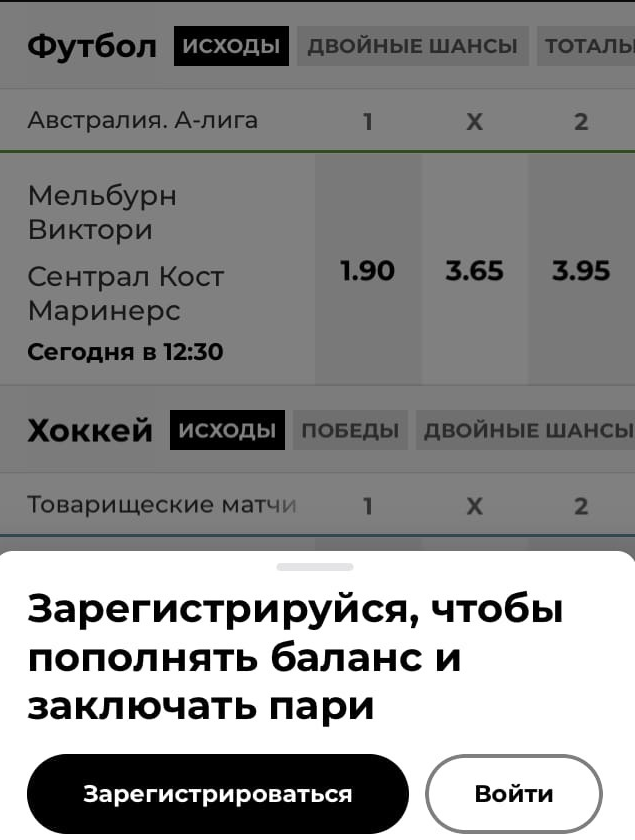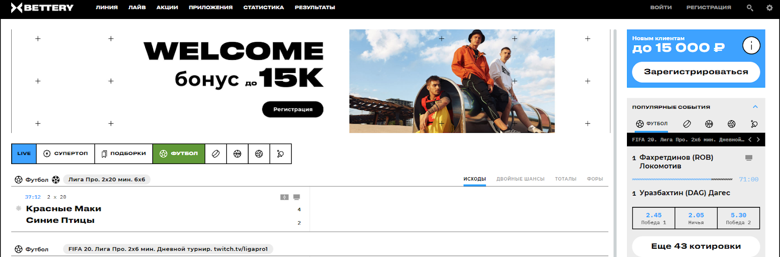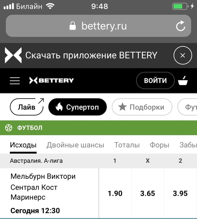 Далее мы автоматически попадаем на адаптированную версию сайта БК BETTERY для мобильных устройств. Кнопка «Войти» будет в правом верхнем углу экрана.