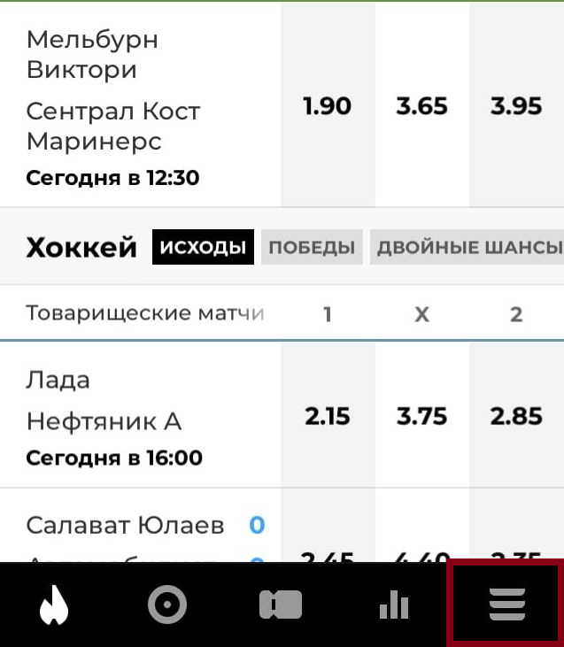 Весь функционал личного кабинета доступен и в мобильном приложении БК БЕТТЕРИ. Для входа в ЛК с мобильного приложения нужно авторизоваться (всплывающее окно появится внизу экрана сразу после запуска приложения), затем перейти в «Меню», которое находится справа внизу экрана.