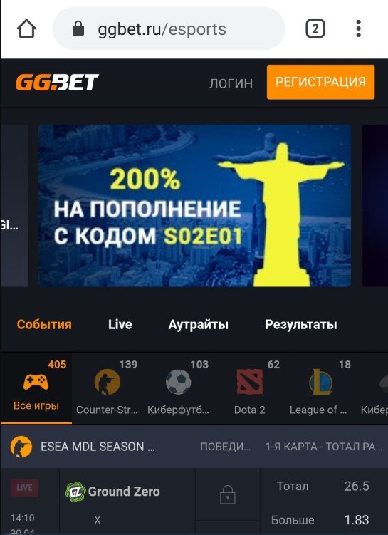 Официальный сайт букмекера GGbet располагался по адресу ggbet.ru. Вход в личный кабинет находился в правой верхней части главной страницы. Кнопка «Логин» была рядом с разделом для регистрации на сайте БК.