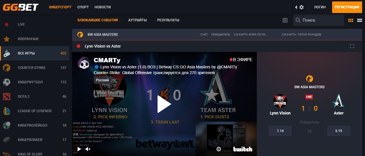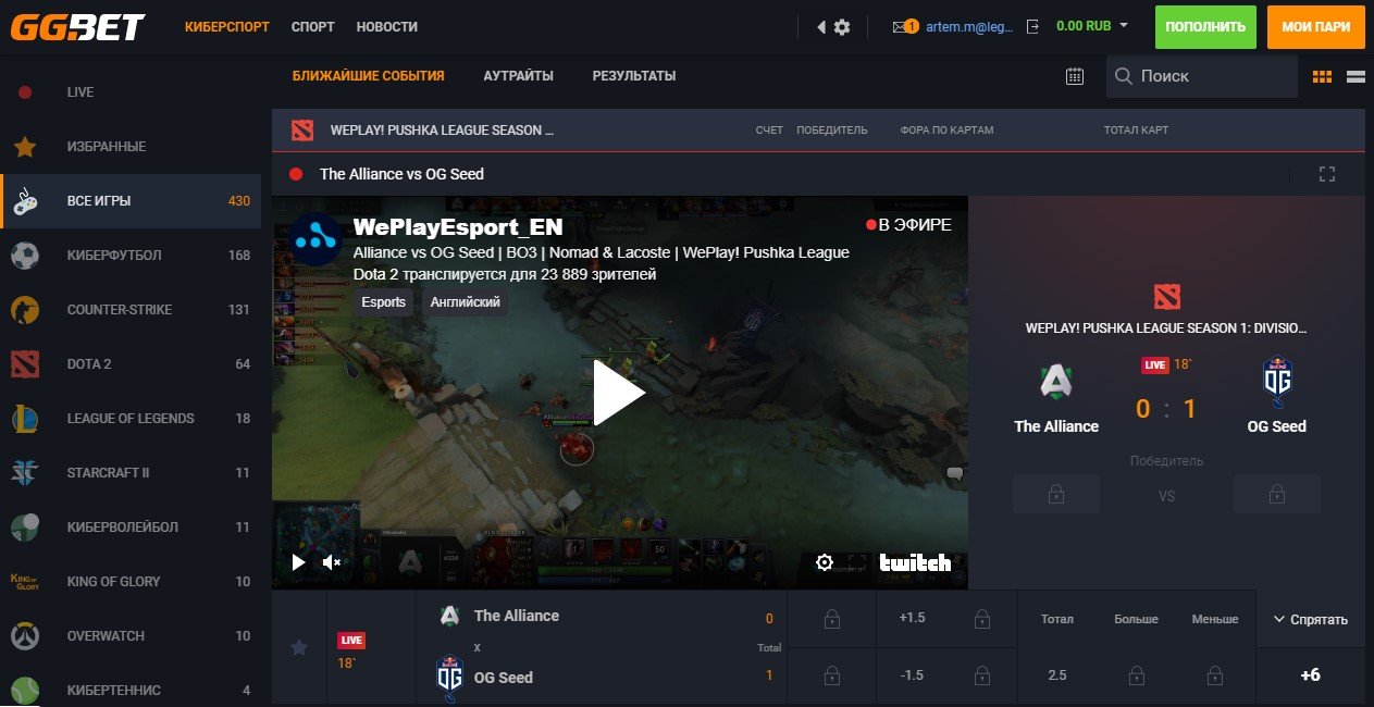 Пользователи букмекерской конторы GGbet могут заключать пари на все популярные виды спорта, а также на киберспорт, на котором специализируется компания.
