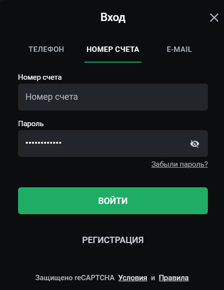 После завершения регистрации каждому пользователю присваивается персональный номер игрового счёта. Его можно узнать во вкладке «Мой счёт», а затем использовать для входа в личный кабинет.Вход с помощью e-mail