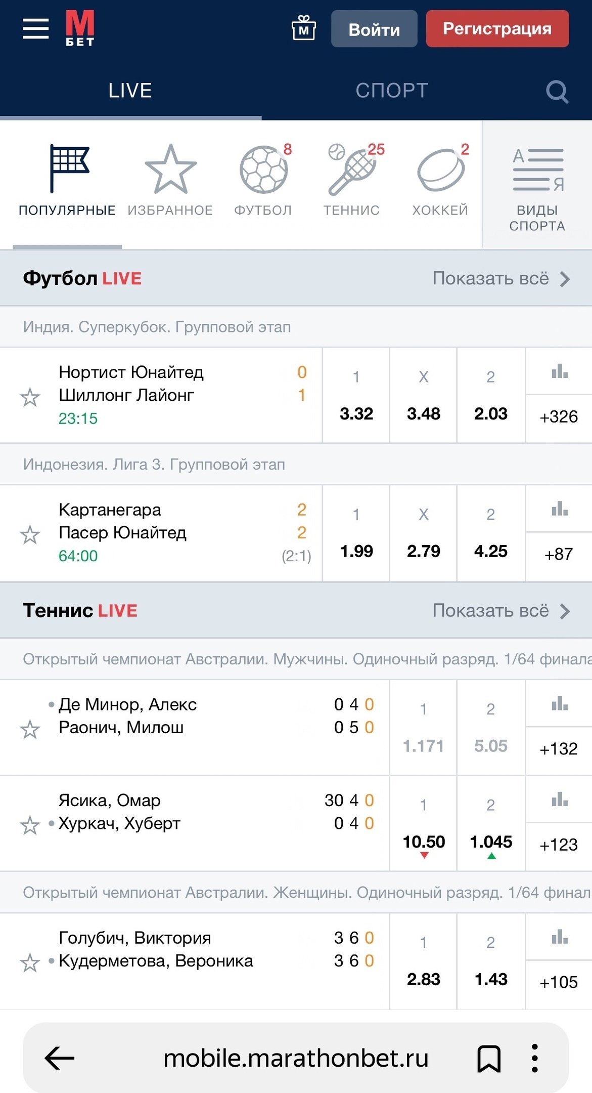 Помимо ПК-версии, букмекерская контора «Марафон» развивает мобильную версию сайта. В адресной строке мобильного браузера нужно ввести адрес mobile.marathonbet.ru. Пункт «Войти» появится справа в верхней части экрана.