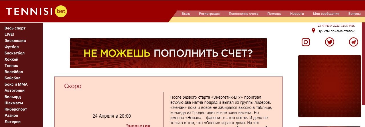 Мои сообщения. В этом разделе пользователь может написать на форум сайта БК «Тенниси». Его сообщение увидят все зарегистрированные пользователи. Также на этой вкладке есть связь с сотрудниками службы поддержки.