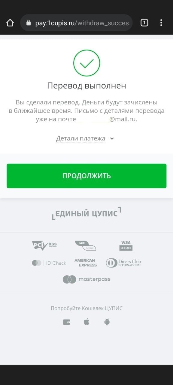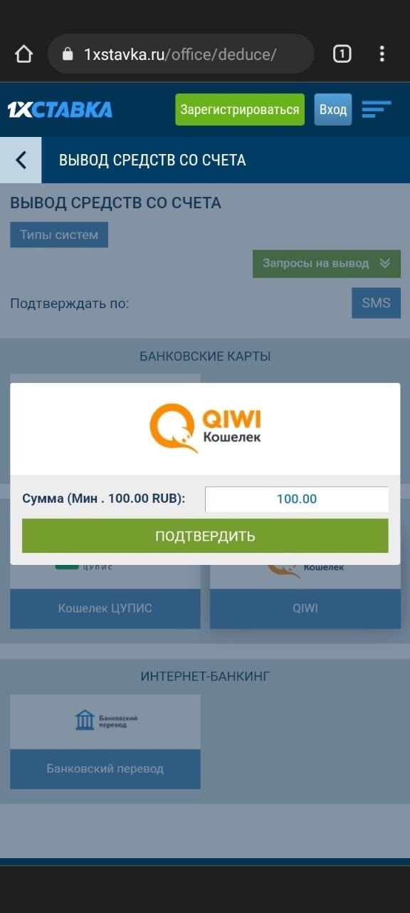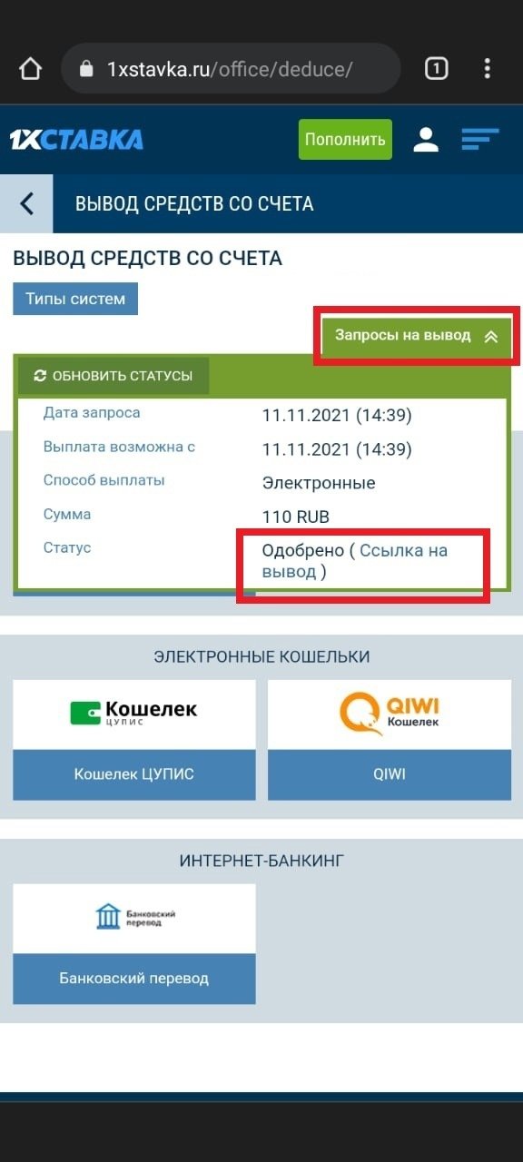 Вывод выигрышей в БК «1хСтавка» был устроен довольно удобно для пользователей.