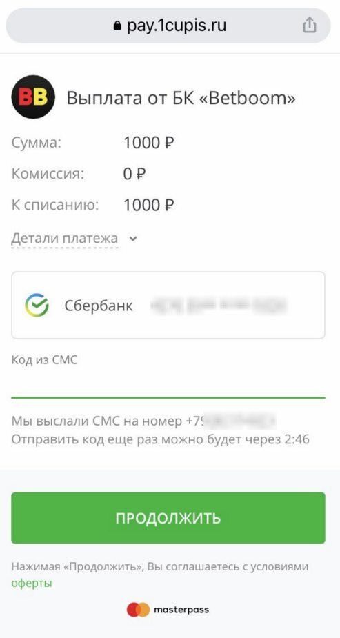 На номер мобильного телефона придёт SMS-сообщение с кодом подтверждения для снятия денежных средств. Запрос на выплату выигрыша создан.