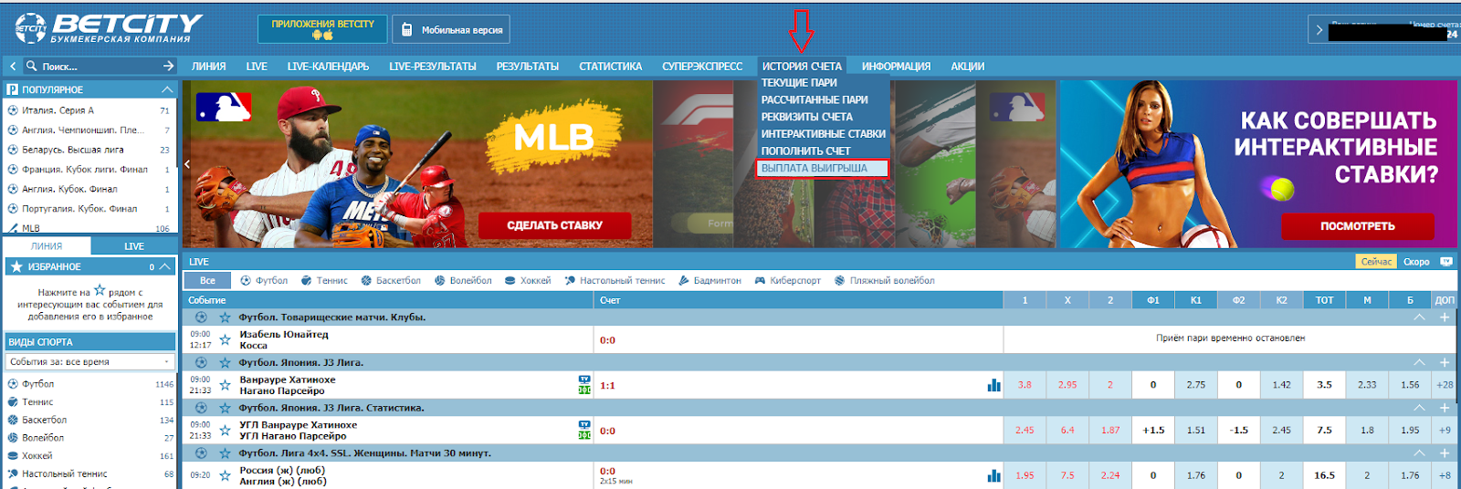 Вывод выигрышей в БК BETCITY устроен довольно удобно для пользователей.