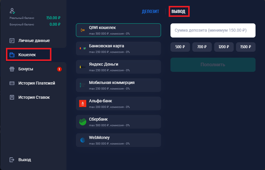 Зайдите в раздел «Кошелек» и выберите вкладку «Вывод».