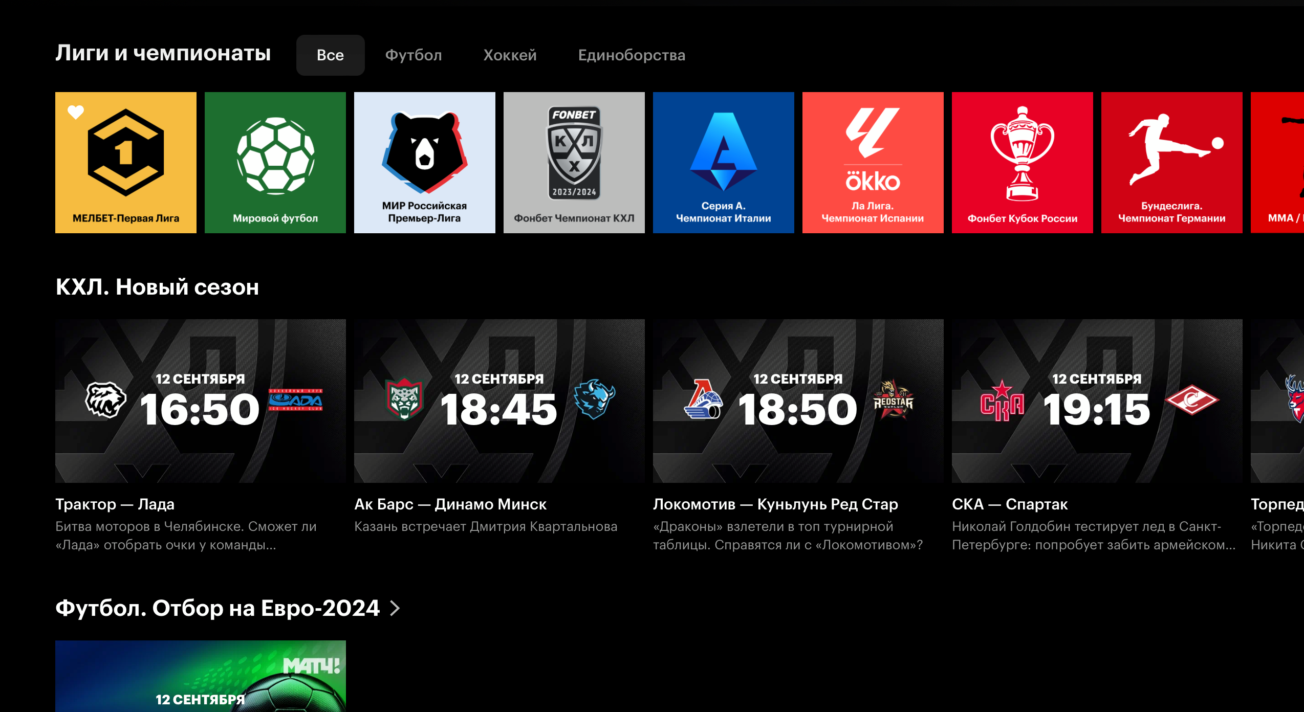 Этот сервис прекратил работу, а весь спортивный контент переехал в «Кинопоиск».