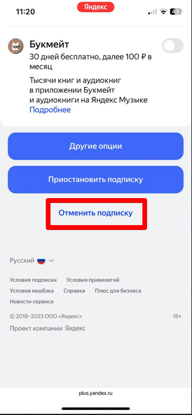 Как отменить подписку Яндекс.Плюс