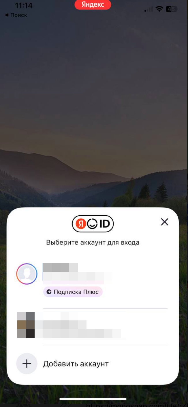Войдите в аккаунт, на который оформлена подписка «Яндекс.Плюс» (он отмечен цветной обводкой).