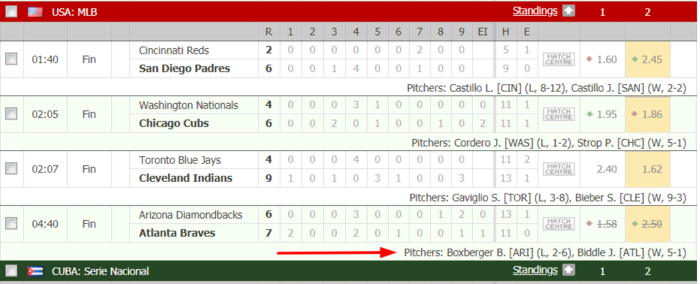 Стартовыми питчерами заявлены игроки из основной линейки ротации. У Аризоны выйдет Зак Гринке, сезон проводит на своем уровне, но бывали и осечки. У Атланты заявлен Анибал Санчес, неплохой питчер, с большим опытом в MLB.