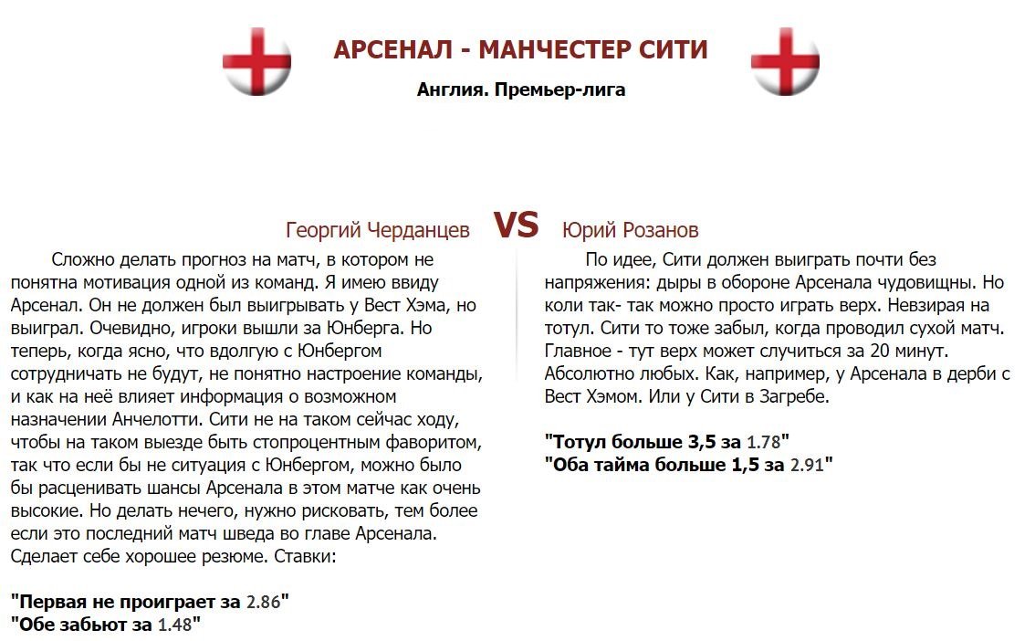 Легко делать прогноз на матч, в котором понятна мотивация хотя бы одной из команд. Правда, Арсенал я не имею в виду, потому что мотивацию этой команды вообще теперь сложно понять. Он должен был выигрывать у Вест Хэма и выиграл. Очевидно, что никто из игроков не согласился выйти за Юнгберга. А теперь, когда ясно, что с ним будут сотрудничать ещё долго, а Анчелотти не назначат, что значит, что 4:0 никого выигрывать не получится, понятно, что настроения у команды нет совсем. Сити сейчас на таком ходу, что шансы Арсенала и в принципе-то расценивать как высокие не получится при всём желании. Мне есть, чем заняться, а потому рисковать я не буду, тем более что это не последний матч шведа во главе Арсенала. А значит он резюме составлять себе не будет, а вот мне надо бы и составить на всякий случай.