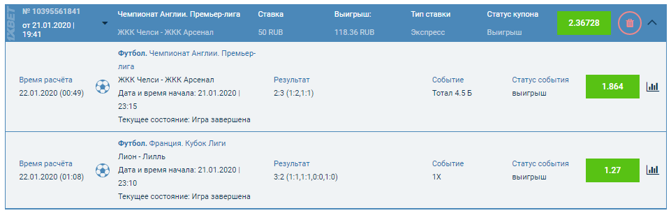 Чтобы данный вид ставки был выигрышным, надо, чтобы сошлись все исходы, указанные в данном событии.