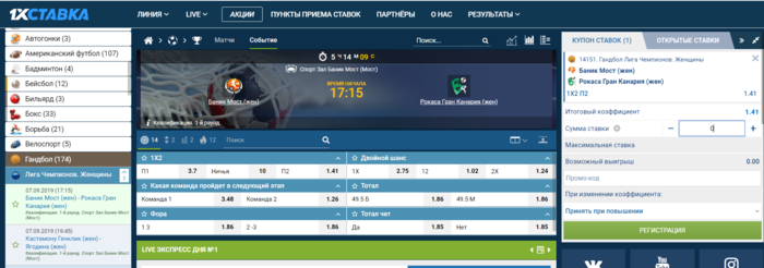 07.09.2019 17:15 Гандбол. Лига чемпионов. «Баник Мост» (жен) – «Рокаса Гран Канария» (жен): победа Рокаса Гран Канария (жен) (кэф. 1.41)