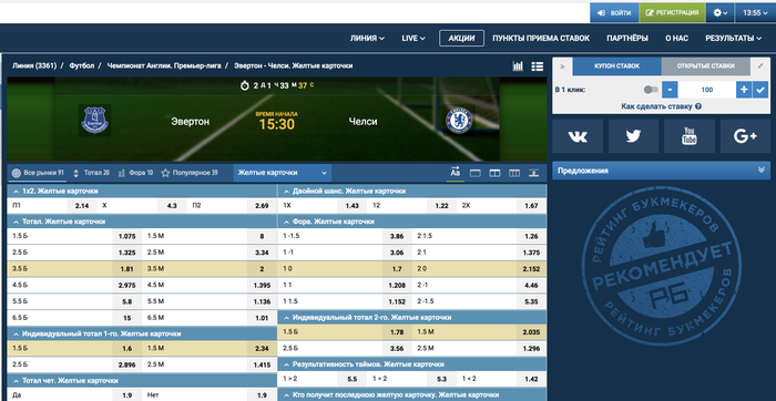 Желтые карточки. Эвертон с форой (0)