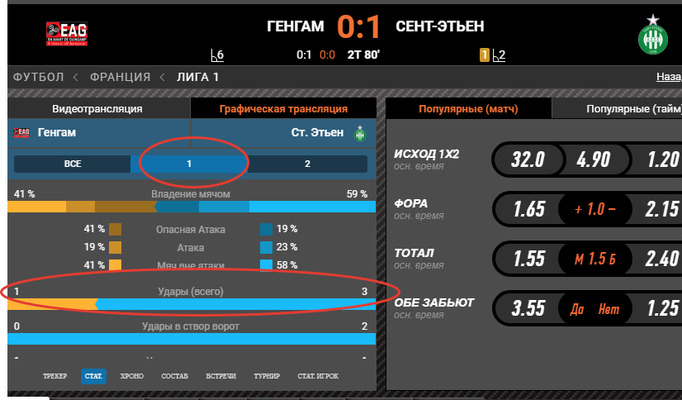 Сент-Этьен в гостях очень много позволяет соперникам у своих ворот, так зеленые в ТОП 3 по ударам в свои ворота.