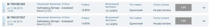 Регулярно удаётся смотреть матчи филиппинской D-лиги по баскетболу, буквально неделю назад удалось посмотреть матч с участием Хайпервош Вайперс против ТИФ Инджинирз, в команде Хайпервош все молодые и шустрые баскетболисты, много залетало дальних и средних бросков, очень понравилась игра против явного фаворита, хоть и проиграли с разницей более 20 очей, ведь на матч им давали (+36,5) – это достойный результат! Альберей Кингз тоже молодая команда, смотрел пару игр с её участием и ничего сверхъестественного не увидел. По моему мнению, в данной паре две совершенно одинаковые по уровню команды, так что для меня непонятно, почему букмекеры недооценивают Хайпервош Вайперс.