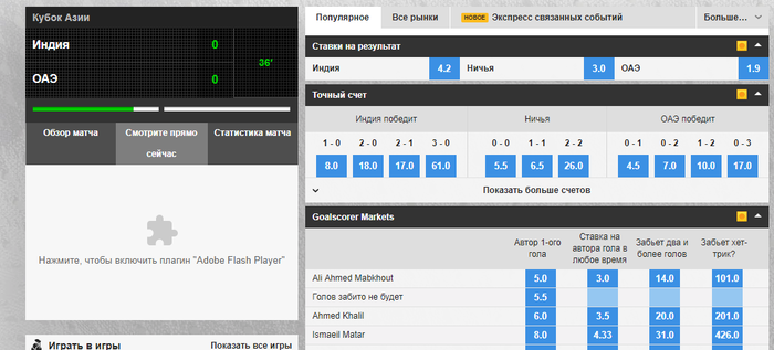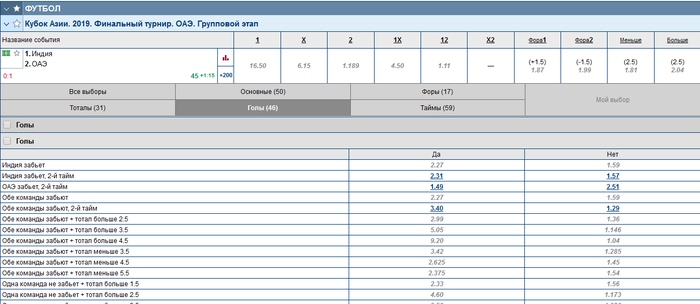 На мой взгляд сборная Индии недооценена букмекерами и совершенно незаслуженно считается таким уж явным аутсайдером матча, будучи хозяином поля сборная Индии забивает практически в каждом своем поединке, не считая последнего хозяйского для Индии матча со сборной Омана, этот коллектив забивал как минимум один гол на протяжении двадцати одного хозяйского матча подряд. Сборная объединенных арабских эмиратов неожиданно сыграв в ничью первый тур кубка Азии с Бахрейном вряд ли уйдет сегодня с поля без забитого гола, но при этом, учитывая весьма результативную статистику сборной Индии скорее всего пропустит в ответ.