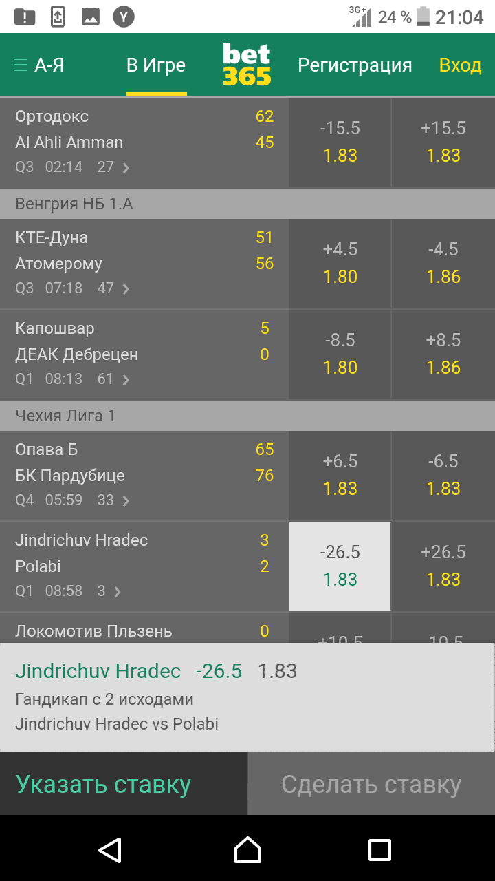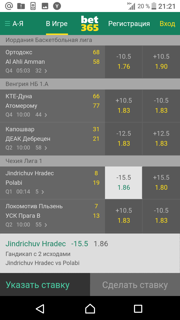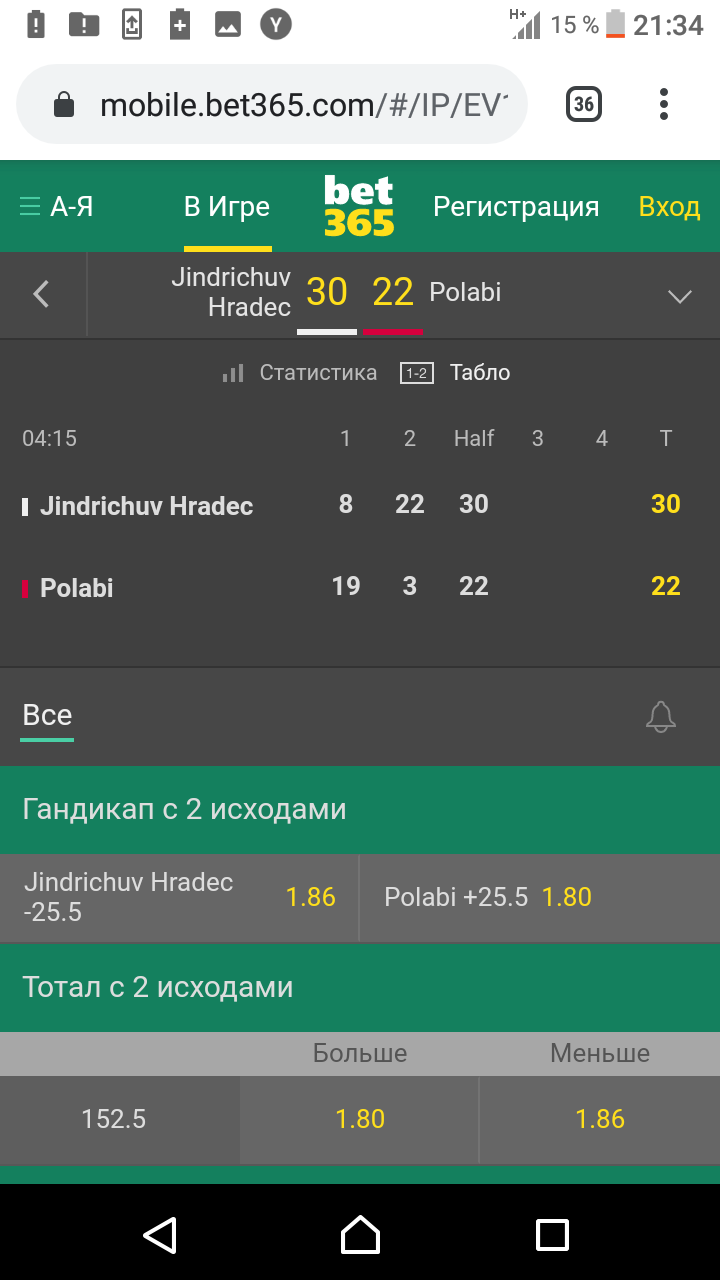 Выбирал из двух вариантов, один лучше другого: победа «Йиндржихув Градец» с форой (-10,5) и индивидуальный тотал хозяев больше 92,5 и остановился на первом, хотя уверен, что обе позиции пройдут с запасом.