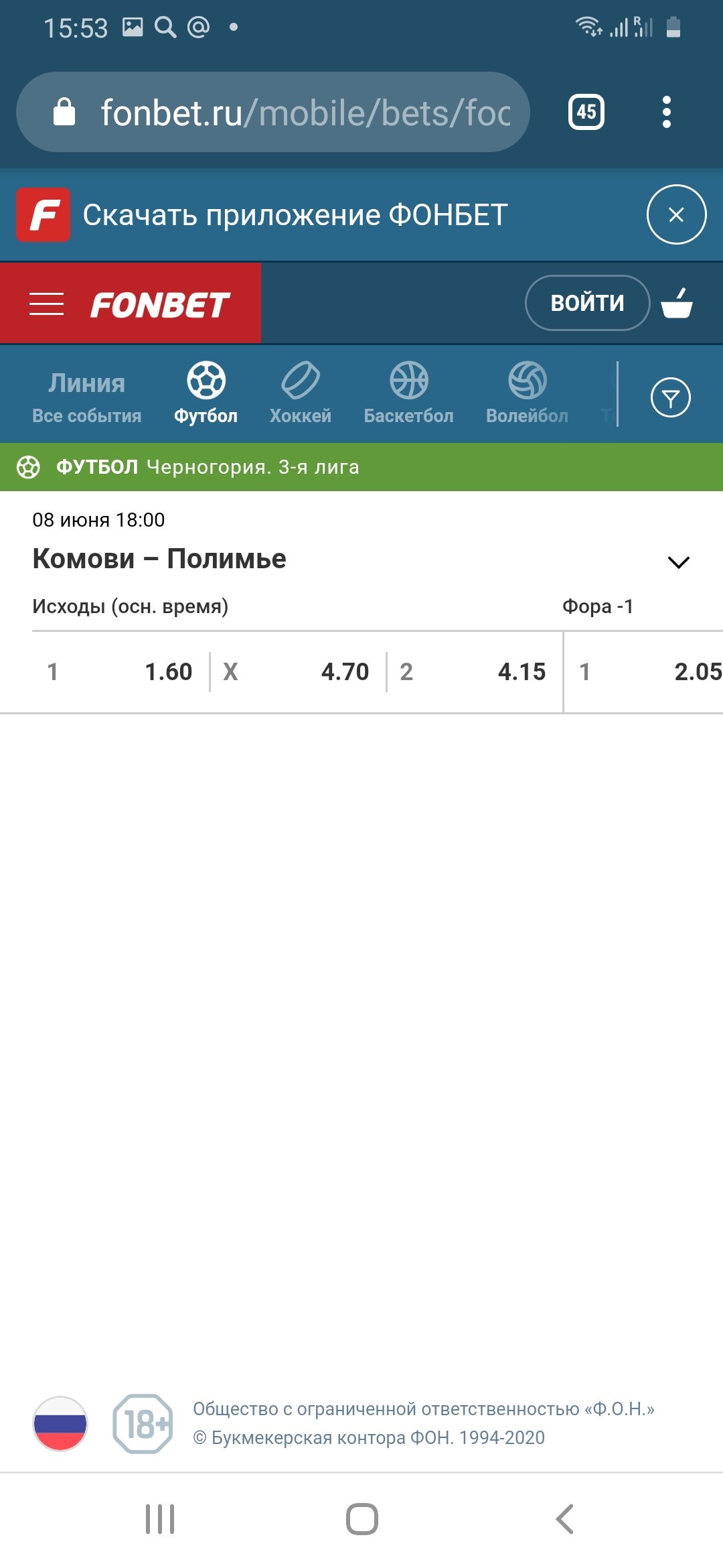 Также советую поискать по различным букмекерским конторах позицию, «Полимле: не проиграет». Если конторы, которые дают на данный исход коэффициент 3,55. По опыту работы на падениях коэффициентов в Черногории, проходимость хорошая, да и лига такая, что в пандемию грех не заработать.
