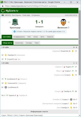 После уверенного первого тайма Валенсии в первом матче во втором тайме российский клуб сумел переломить ход игры и забил очень важный мяч. Гол на выезде оставляет Краснодару хорошие шансы на выход в четвертьфинал. Черно-зеленые уже доказали, что умеют терпеть в матчах против сильных соперников, так в этом розыгрыше Лиги Европы были победы над сильными командами (Байером и Севильей). Веду я к тому, что в этой паре сохраняется интрига, т.е. борьбы и эмоций в ответном матче должно быть в избытке.