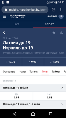 Не понимаю букмекеров, откуда они нашли такой завышенный коэффициент на гол Латвии в принципе (команда не забивает 5 игр подряд!). Я бы давал котировку не больше 1,4. Но ещё больше не понимаю, почему на то, что Латвия не забьёт, букмекеры дают коэффициент 1,81, а «Обе забьют — нет» стоит 1,94. Ведь не факт, что Израиль сможет забить, это не самая забивная сборная. Так что, забираем позицию не раздумывая!