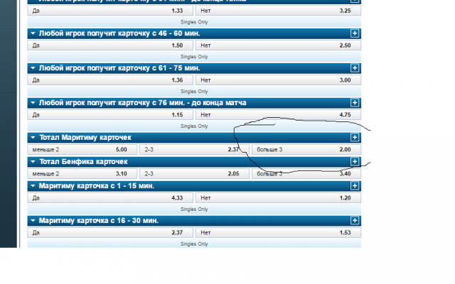 **Ставка учитывает желтые карточки + красные карточки по одному очку.