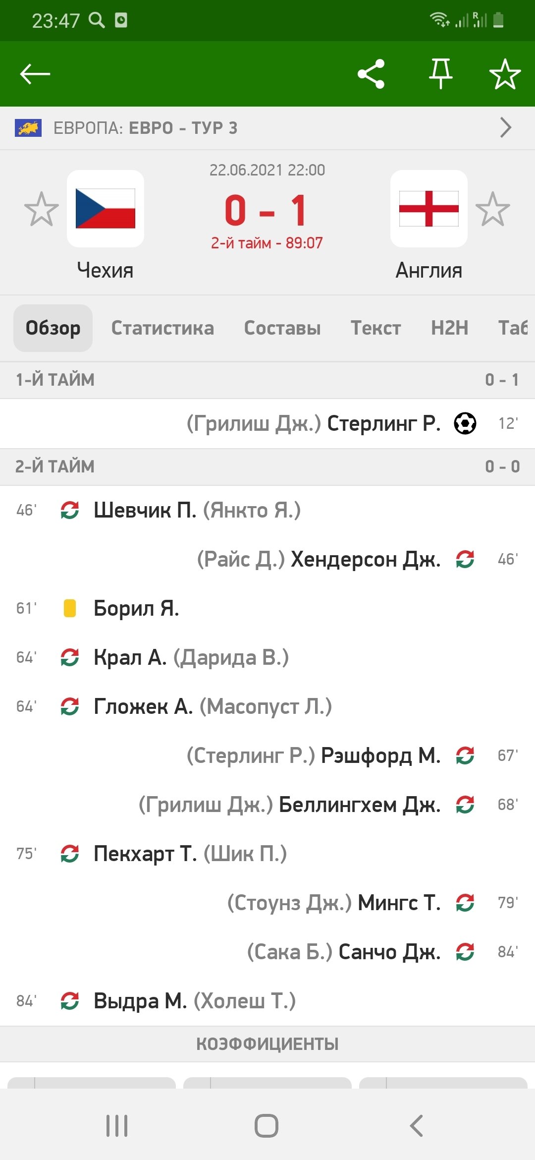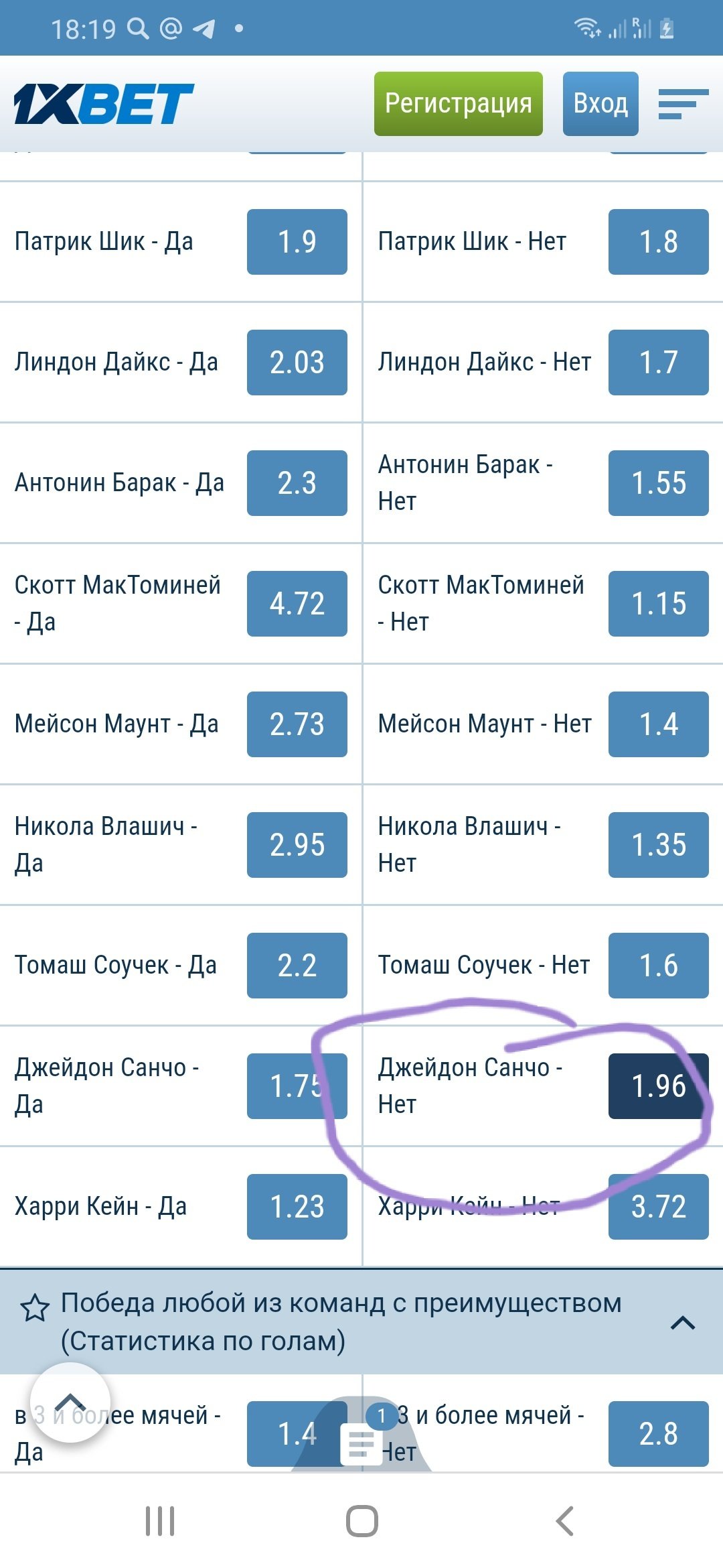 В прошлом году, когда Джейдон Санчо был на пике своей формы, тренер сборной Англии Гарет Саутгейт регулярно давал ему шанс проявить себя. В этом году всё поменялось, в середине сезона Санчо получил травму, пропустил много матчей за свой клуб «Боруссию» Дортмунд, соответственно, результативность упала. В сборной Англии просто сумасшедшая конкуренция на место в атаке: Харри Кейн, Маркус Рэшфорд, Рахим Стерлинг, Мэйсон Маунт, Джесси Линганд, Букайо Сака – все находятся в потрясающей форме. 2 июня в товарищеском поединке англичан против сборной Австрии, когда в заявке на матч не было Рэшфорда, Стерлинга и Маунта, тренер британцев играл по схеме с тремя атакующими наконечниками Лингард – Кейн – Сака. Как видим, даже при отсутствии трёх основных нападающих Джейдону Санчо не находится места в стартовом составе. Мало того, его даже на замену не выпускают в никому не нужном товарищеском матче. Считаю, что на ЕВРО 2020 Джейдон Санчо в лучшем случае выйдет пару раз на замену. По моему мнению, коэффициент на гол в любое время на Санчо слишком завышен, поэтому предложу заиграть данный вариант.