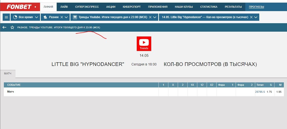Гандикапер сайта Legalbet Тимур Хабибуллин предлагает поставить на количество просмотров клипа Hypnodancer на YouTube-канала группы Little Big.