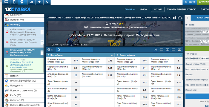 За 22,0 беру на сотку хотя бы просто поболеть! Большунов в отличной форме, судя по первому этапу!