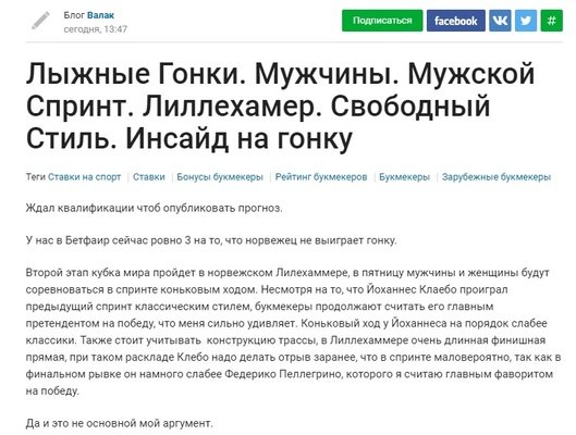 Сторонний каппер сайта Legalbet Totalprognoz предлагает прогноз на то, что Клаебо не выиграет в спринтерской гонке свободным стилем.