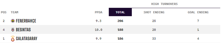 По ожидаемым забитым (xg = 34,72) и пропущенным (xga = 16,31) «Фенербахче» уступает только «Галатасараю».