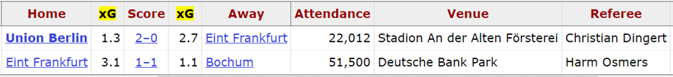 Тем не менее стоит отметить, что в заключительных двух турах «орлы» смогли частично реабилитироваться и на голову превзошли своих оппонентов по метрике ожидаемых забитых голов. В это число попал и «Унион Берлин» (0:2), который лишь по счету оказался сильнее.