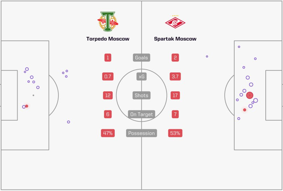«Спартак» выступит на один дивизион выше своего оппонента и явно превосходит его в исполнительском мастерстве. По ожидаемым забитым (xg = 2,06) и пропущенным (xga = 1,14) голам «красно-белые» идут на 1-м и 3-м местах в РПЛ соответственно.