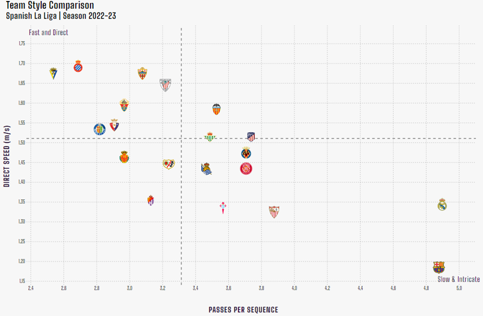 «Эспаньол» эксплуатирует похожую модель футбола, с той лишь разницей, что «попугаи» встречают соперника ближе к своим воротам и чаще отдают ему мяч (40% владения).