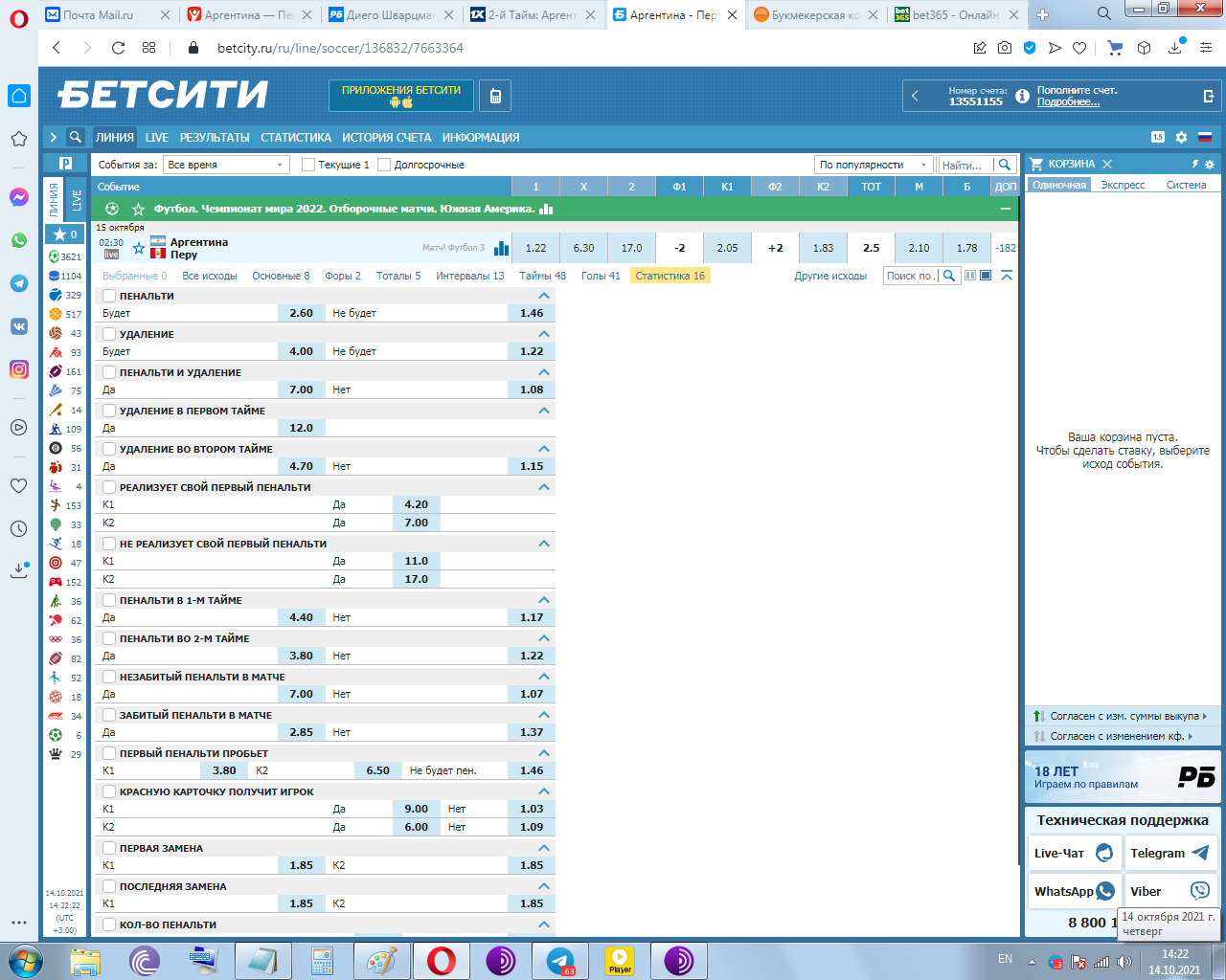 Очень выигрышно смотрится позиция «Победит и тотал меньше 4,5: Аргентина ДА», аргентинцы умеют рационально распределять свои силы для приобретения трёх очков. Также думаю, что с первых минут хозяева приложат все усилия, для того чтобы получить преимущество в счёте и не переживать за результат в концовке, поэтому предложу рассмотреть вариант с угловыми до 60 минуты. Перу большую часть времени будет отбиваться и не всегда это будет в рамках правил, рискованных вариант ставки индивидуальный тотал Перу больше 3,5 по жёлтым карточкам имеет право на жизнь.
