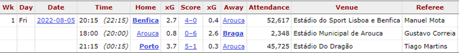 Впрочем, «Арока» набирает очки уже в 3 матчах подряд. Команда уверенно превзошла на своем поле «Эшторил» (2:0) и «Портимоненсе» (4:0), а в гостях не уступила «Шавишу» (1:1). Этим она подтвердила, что дома остается самым результативным клубом (15 мячей забито ~ 68%) за исключением топ 3 — «Бенфики» (29), «Порту» (28) и «Спортинга» (21).