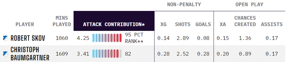 Однако такой стиль крайне неэффективен. По количеству ожидаемых забитых (xg = 19,4) и пропущенных (xga = 33,1) голов команда занимает предпоследнее и последнее места в чемпионате соответственно. Лишь за счет высокой реализации моментов «Аугсбург» еще не оказался в зоне вылета.